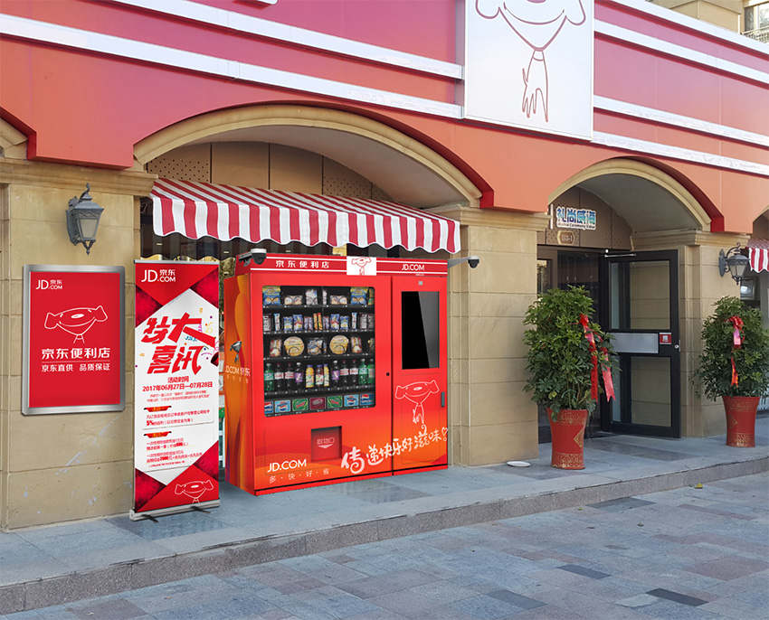 京東超市定制外觀設(shè)計造型元素從前到后一致延申,操控區(qū)與前后造型一致,整機視覺造型統(tǒng)一,切面的應(yīng)用,即能達(dá)到鈑金易于加工的目的,又不缺乏美感與視覺沖擊力,紅色企業(yè)VI識別色塊與色帶點綴其中,體現(xiàn)出產(chǎn)品簡潔大方與科技感。
